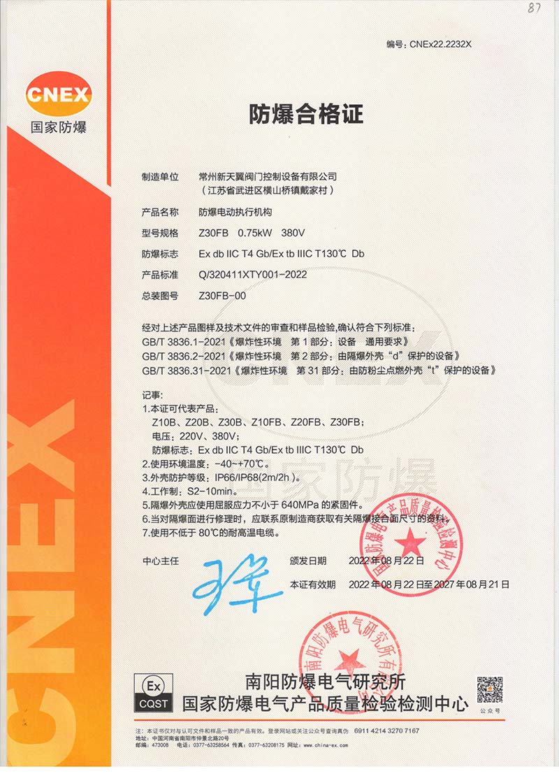 防爆Z10B Z10FB國家強制性產品認證CT4證書109.1